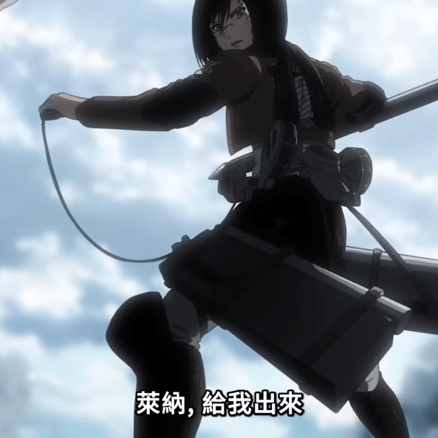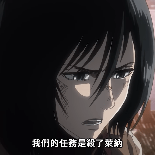 - 瑪麗亞奪還戰:這個時候艾爾文團長跟整群新兵已經在牆外邊緣被吉克以石頭砸死,慘烈犧牲,只剩兵長一人痛苦地掙扎要殺掉吉克。視線轉回城牆內,米卡莎、柯尼和夏莎順從讓的指揮,配合阿爾敏的策略,由阿爾敏和艾連應對貝爾托特的巨大巨人,而其餘成員則迎戰萊納。讓的戰術是使用兩支雷槍擊落萊納的牙齒,再由米卡莎這位最強者使用最後一支雷槍引爆萊納的嘴巴。在這時,貝爾托特乘機襲擊艾連和阿爾敏。米卡莎一度陷入猶豫,擔憂著她的兒時玩伴的安危。然而她很快提醒自己:「我們的使命是殺掉萊納。」很難得放下了對艾蓮跟阿爾敏的關心,回過神來專心投入對抗萊納的戰鬥,展現她的英勇姿態。WIT Studio以流暢的畫面刻劃了米卡莎用雷槍給予萊納致命一擊的場面。這裡的米卡莎,不僅擁有卓越的士兵風範,無論是力道還是美感,都毫不遜色於ACG世界中的任何女主角。此外我特別欣賞米卡莎的性格:相較於讓仍對萊納抱有同袍之情、心存不捨、猶豫不決,米卡莎在這一刻表現得比艾連和讓更加成熟。後來萊納被漢吉、米卡莎聯手擊敗,而漢吉執意要殺死不願要交出情報的萊納的時候,米卡莎始終面無表情,讓則充滿了矛盾。而這樣的劇情描寫與人物心境的敘述,真實到讓人不可思議。