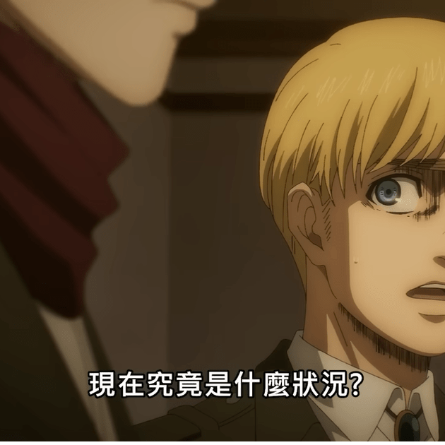 地鳴發動以後,軍團體系崩塌,佛洛克帶著葉卡派四處批鬥義勇兵和舊體系的軍官,漢吉和里維也不見蹤跡。此時,他們已不再是「士兵」,失去了精神領袖和長官,失去了艾蓮,徒留空洞和茫然的「勝利」。艾連成功啟動地鳴,對島外的世界發動了的報復與屠殺。這段時間的對手戲和文戲,是我認為自王政篇以後最為出色的一部分,特別是104期同伴間短暫出現的思想分歧,以及阿爾敏和米卡莎在被艾連拋棄後所經歷的受傷和複雜情感。在這裡,米卡莎的一句話讓我深感心疼;當她匆忙詢問為了拉攏瑪雷,拯救繼承顎之巨人的法爾科的阿爾敏,那句脆弱的問題:「阿爾敏,我該怎麼辦呢?」阿爾敏冷冷地回應:「妳去幫讓啊,妳多少該自己想想要怎麼做。」接著米卡莎仍不安地追問道: