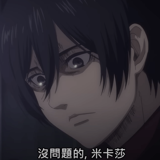 我特別喜歡諫山創在帕拉迪島分裂篇(漫畫:第27~29卷;動畫:最終季(第69~80集)以及地鳴篇(漫畫:第30~34卷;動畫:最終季(第81~94集)的米卡莎,因為諫山創-至少在他能力所及內-將米卡莎的女性形象、內心戲與矛盾、面對青梅竹馬的愛情和無法理解,以及被艾連惡毒的話所刺中的傷,用他自己的方式與風格,刻畫得很生動,很真實。也有部分觀眾與讀者對於米卡莎被塑造得過於「男人婆」表達不滿。她保留著極簡的短髮、總是穿著簡約的軍服或沉重的立體機動,再加上Mappa陰鬱的畫風以及故事複雜的政治議題,使她缺乏前三季的病嬌感和少女心,這樣的塑造確實引起了一些觀眾的異議,我能理解這樣的觀點。然而,我認為這正是《進擊的巨人》在最後階段獨具特色的原因:為什麼即便是士兵,也必須局限在特定的形象中呢?