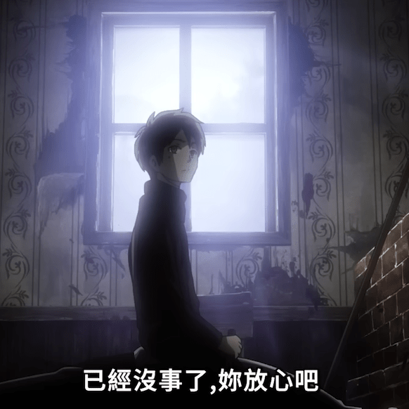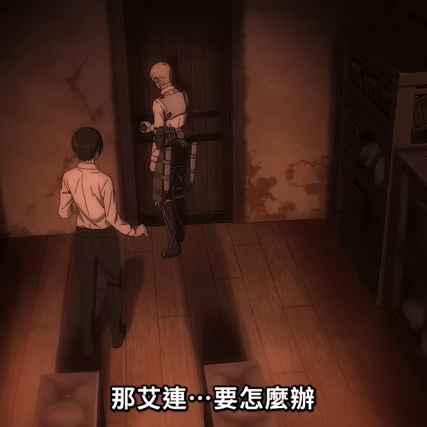 雖然鋪陳較少,但也不能算完全失敗。回到之前提到的情節,當得知牆外的真相以及世界的敵意後,艾連和阿爾敏因為思想上的分歧而產生了裂痕。艾連在掙扎著是否發動地鳴,他坦言,曾無數次試圖改變未來,但看見景象依然不變,所以只能朝向這不可逆的結果前進。此刻的艾連,脆弱、缺乏自信,深陷混沌之中,卻不願向夥伴表露心聲。一是出於他的性格,二是歷經種種劫難後,他已經培養了不依賴他人的執念,因為他深知過度依賴他人可能會害死更多夥伴。正因為無法再像以往那樣從阿爾敏身上得到確切的解決辦法和慰藉,他的情感天秤不知不覺間悄悄地傾向了米卡莎。當他得知自己壽命只剩下四五年時,他在其實已經知道答案的情況下,還是進一步向米卡莎和甚至還不熟的吉克詢問,想確認米卡莎對他的感情究竟是什麼?是基於阿卡曼一族對宿主的執著嗎?吉克的否認,大概也讓艾連心理的負擔更加地沉重和難受,因為他知道他沒辦法回應她,即使他後來也向阿爾敏坦承,他也想跟米卡莎在一起。當艾連遇到中東小孩的那一刻,或許是他內心最為脆弱的瞬間。在米卡莎趕來之前,他已經向中東小孩說出了那句經典的台詞:「當我得知牆外還有人類時,我很失望。」這個場景充滿了微妙的心碎感。或許因為身為漫畫迷的我已經知曉後續的故事,所以在觀賞動畫時,透過聲優的表現和背景音樂的催化,內心難以壓制這淡淡的哀傷。