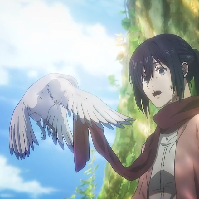 以一位說書人的視角來看,《進擊的巨人》的動畫結局呈現得相當出色,近乎完美彌補了漫畫的一些疏漏。製作組的精心呈現、聲優出色的演技,以及諫山創的經典故事,都使這部作品脫穎而出。不少網友評價未來十年可能難以再見到如此卓越的傑作,對此我深感贊同。每個角色的詮釋、描寫、成長和矛盾都深具用心,觀賞完動畫後,冷靜思考時竟生出「這個結局實在太合理、太完美」的感慨。當然,其中不免帶有些許痛感,特別是艾連與米卡莎注定無法無法常相廝守、過著尋常夫妻生活的遺憾。在ACG世界的眾多情侶檔與官配中,鮮少有哪一對比艾連與米卡莎更加悽慘、令人心痛。然而,使得這樣的情境更加深刻的,是動畫結局最後的畫面,搭配著感人的配樂,呈現了米卡莎在艾連面前哀悼與啜泣的動人場景。這一幕著實美麗而悲傷。米卡莎的頭髮已經留得很長,回應了第一季第二集艾連伸手撥弄她的頭髮要她剪短的場景,以防在立體機動訓練中受傷。她將長髮編成馬尾,穿著樸素的裙子,首次在讀者與觀眾面前展現她卸下「士兵」身分的女性姿態,化身成為了一位普通的女子。當然,也依舊帶著艾連送給她的那條紅圍巾。隨後,一場觸動全球網友與觀眾心弦的經典場景浮現眼前:一隻賊鷗突然掠過天際,再度為米卡莎繫上了那條圍巾,宛如當年艾連為了保護米卡莎、毫不畏懼地站在無垢巨人面前大聲宣示:『往後的歲月裡,我也會一直幫妳圍好』這句充滿霸氣的誓言,不禁令人傾注淚水,也讓米卡莎回過神來以後,默默地從大顆安葬著艾連的大樹下站了起來,含淚笑道:「艾連,謝謝你,幫我圍上了圍巾。」這裡的賊鷗也可以由讀者和觀眾自由想像成艾倫獲得救贖後的靈魂、終於成為了一支可以在世界上任意翱翔的鳥兒。